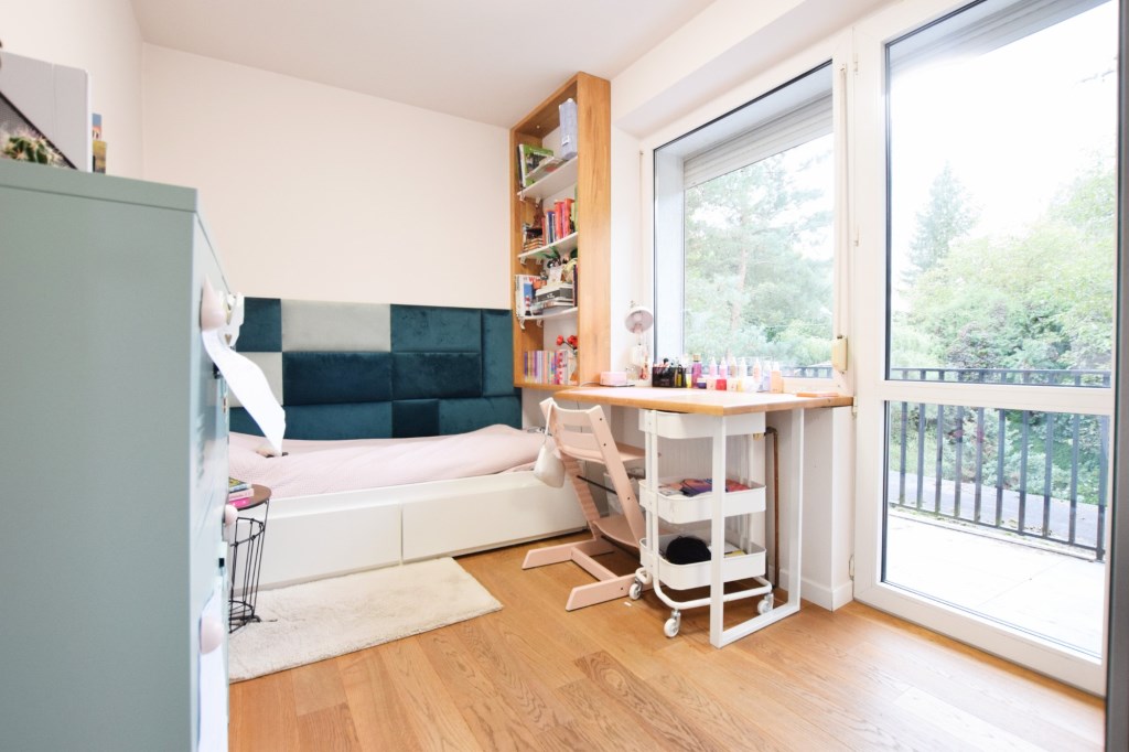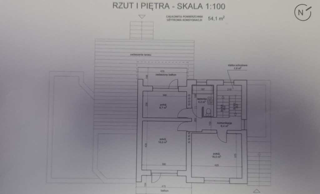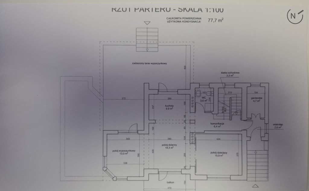 Piętro: trzy sypialnie (dwie z wyjściem na balon) oraz łazienka z WC.