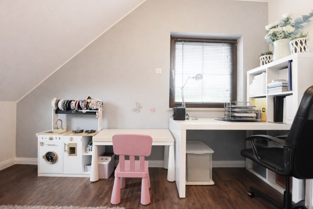 Piętro: trzy sypialnie, łazienka z wc, wyjście na strych