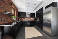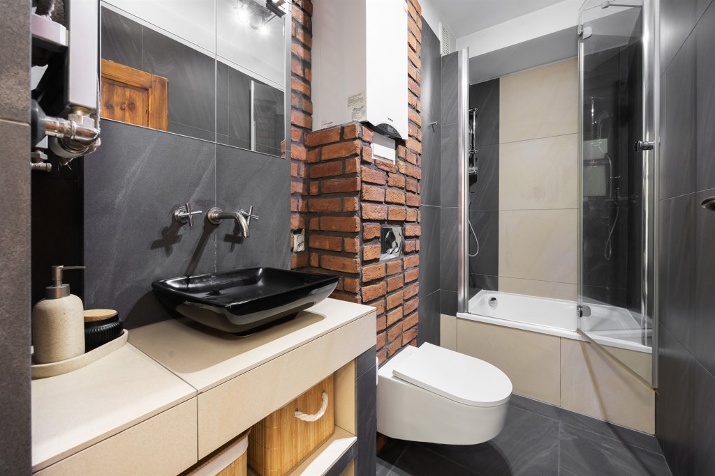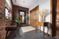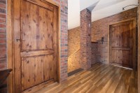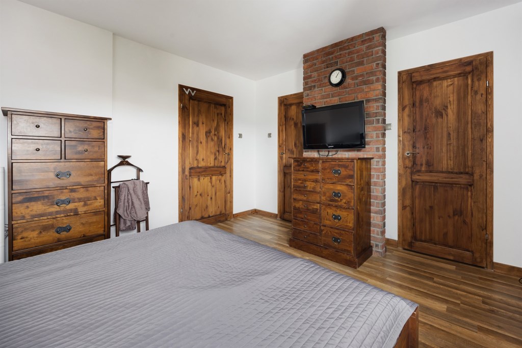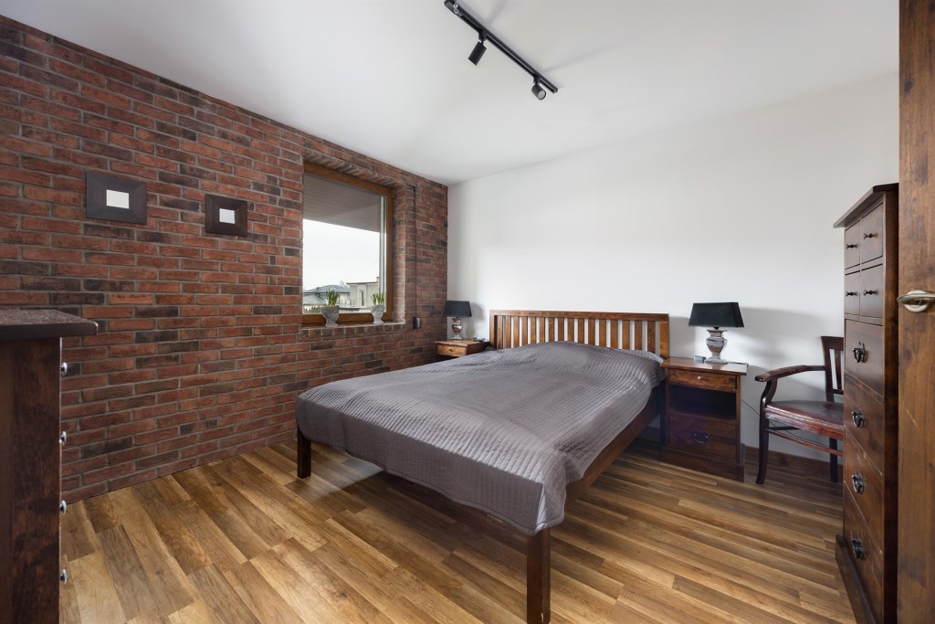 Ściany – gładź gipsowa, płytki ceramiczne w łazienkach, ozdobna cegła klinkierowa w kuchni, holu i pokojach;