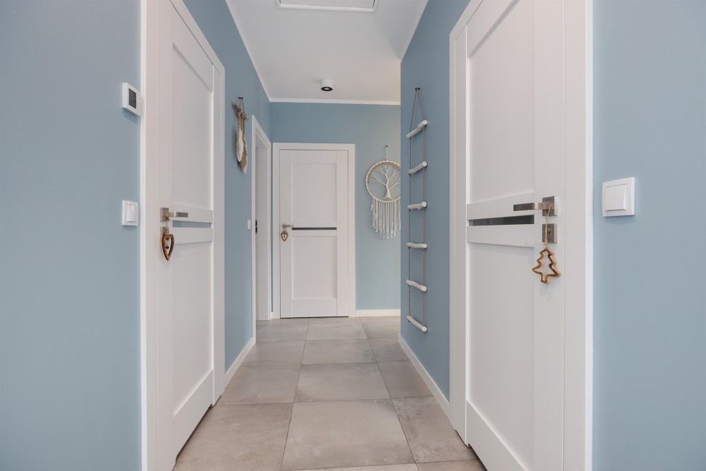 Ściany – gładź gipsowa, płytki ceramiczne w łazienkach,