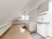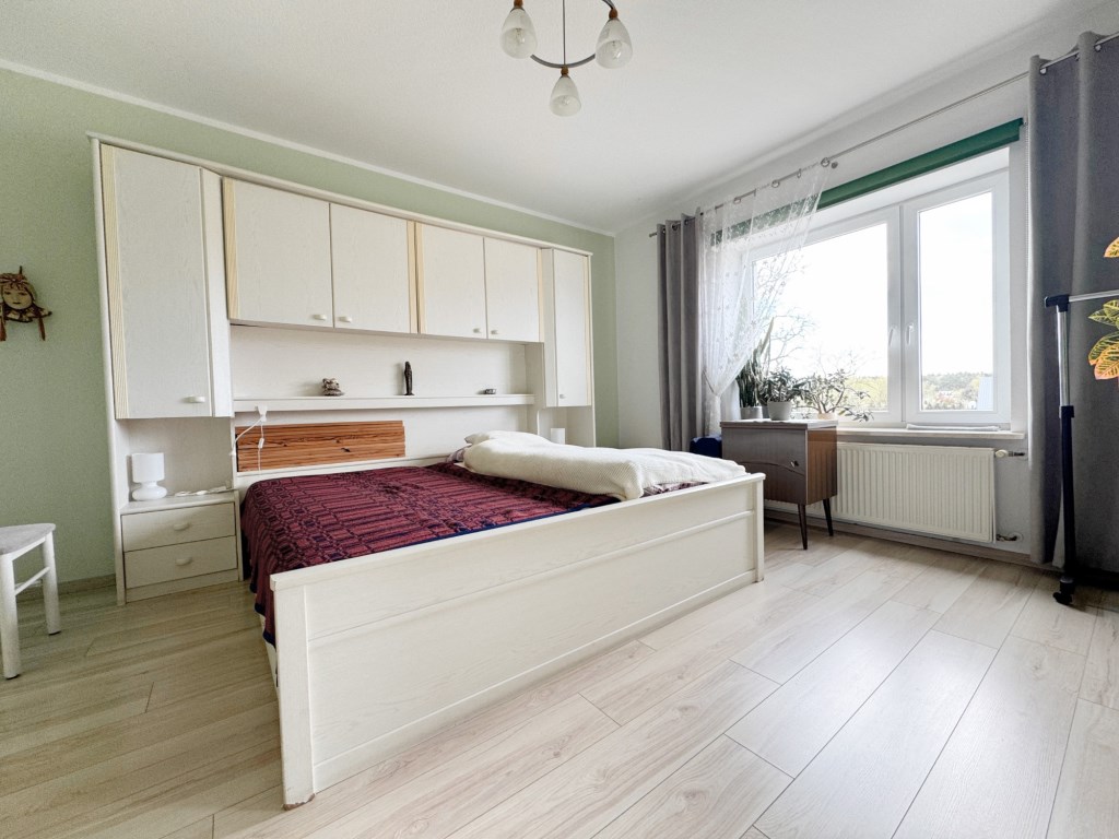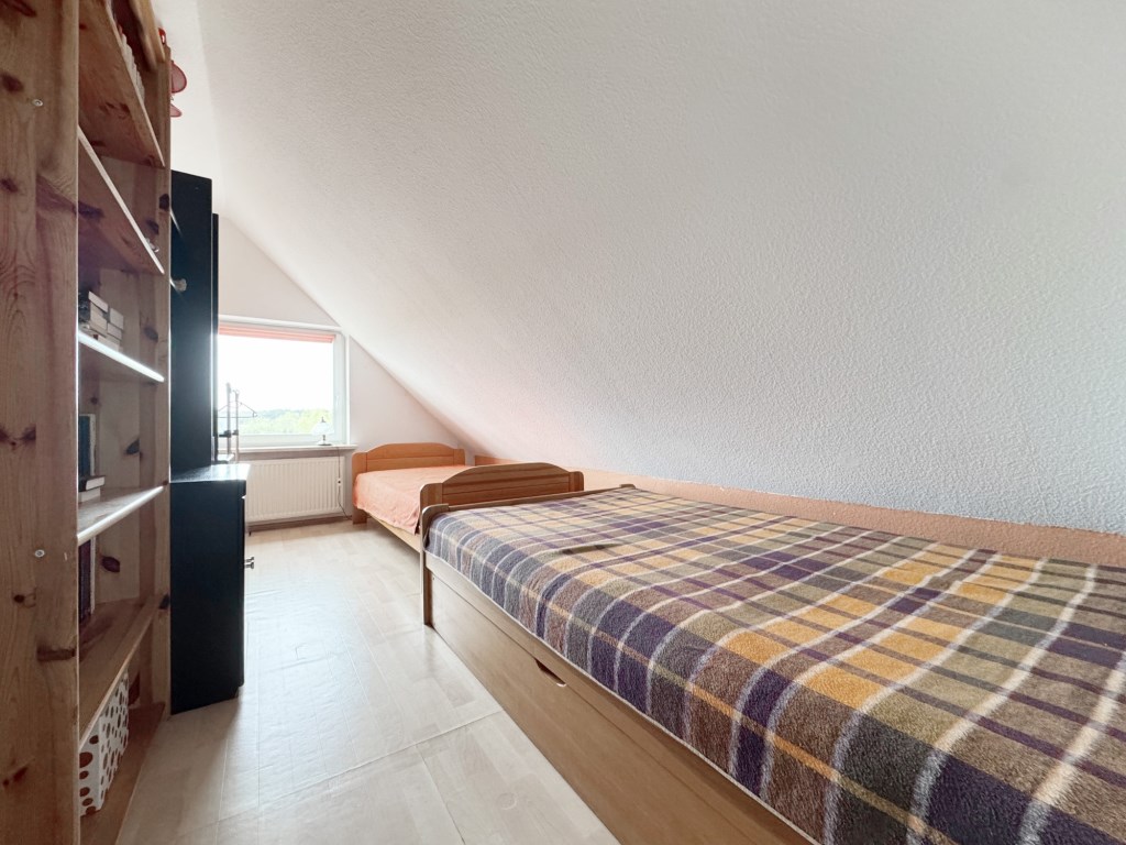 - piętro, to duża sypialnia i mniejszy pokój ze skosami oraz łazienka.