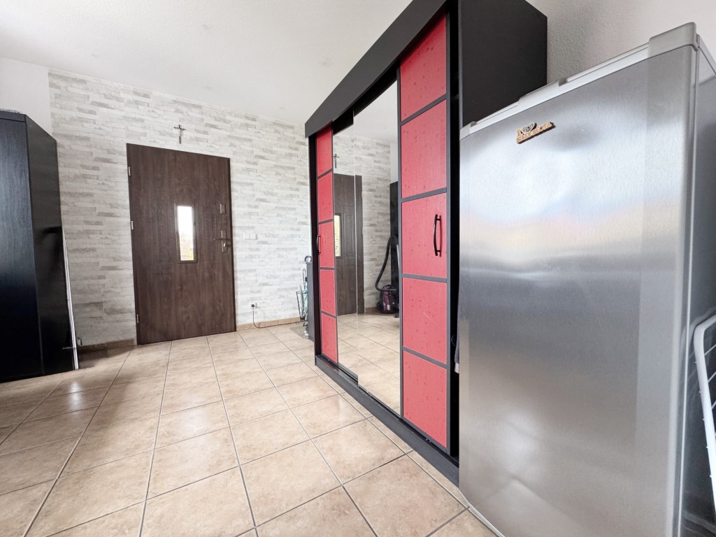 - parteru, gdzie znajdziemy 2 pokoje, kuchnię, łazienkę, przestronny hol,