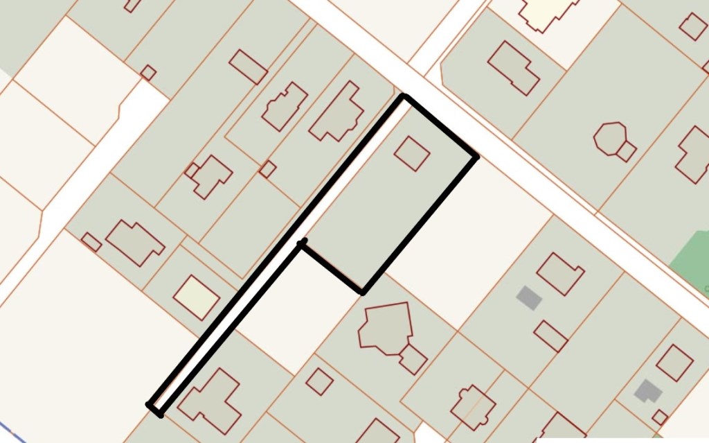 Teren: płaski, ogrodzony, z budynkiem (70m2) do rozbiórki lub całkowitego remontu;