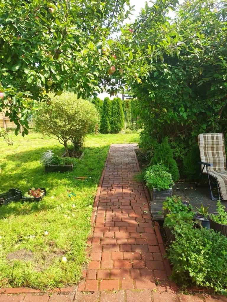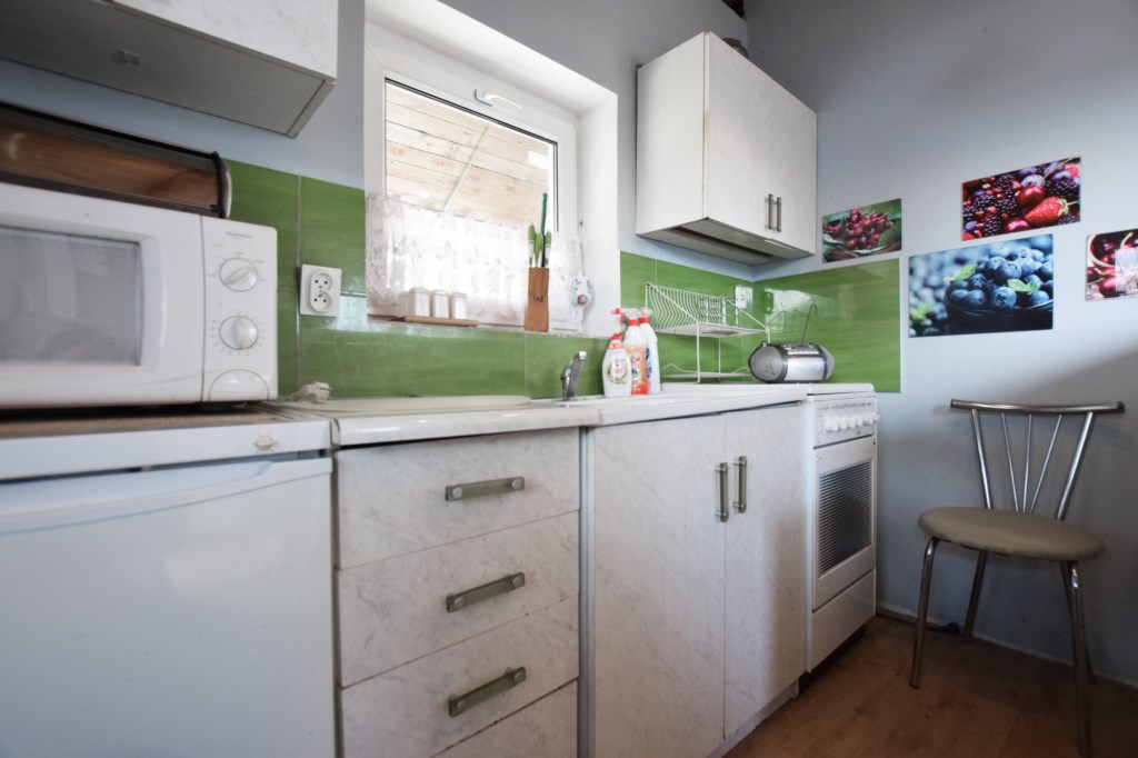 Na ogrodzonej działce znajduje się domek o powierzchni ok. 25 m², który zapewnia komfort użytkowania również w chłodniejsze dni. W jego skład wchodzi: salon z aneksem kuchennym, sypialnia na poddaszu i łazienka z WC i prysznicem.