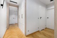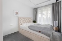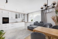 Układ mieszkania został starannie przemyślany – przestronny salon z aneksem kuchennym, cztery niezależne sypialnie, dwie łazienki, oraz możliwość zakupu trzech miejsc w hali garażowej i pomieszczenia gospodarczego (za dodatkową opłatą), zapewniają funkcjonalność i wygodę codziennego życia. Duże przeszklenia oraz wyjścia do dwóch ogródków podkreślają atuty parterowego usytuowania.