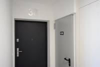 Zabezpieczenia: domofon, drzwi antywłamaniowe, elektryczne rolety antywłamaniowe, monitoring.