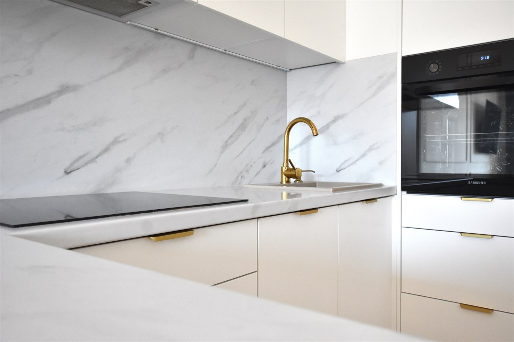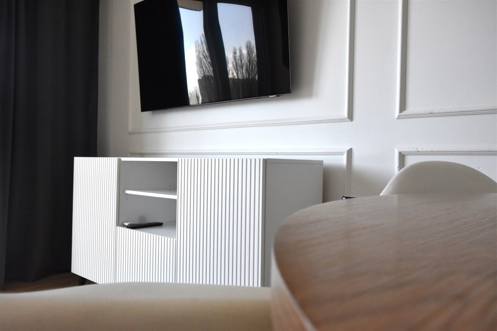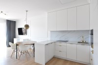 - aneks z nowoczesną zabudową i sprzętem AGD (lodówka, piekarnik, płyta indukcyjna, zmywarka)