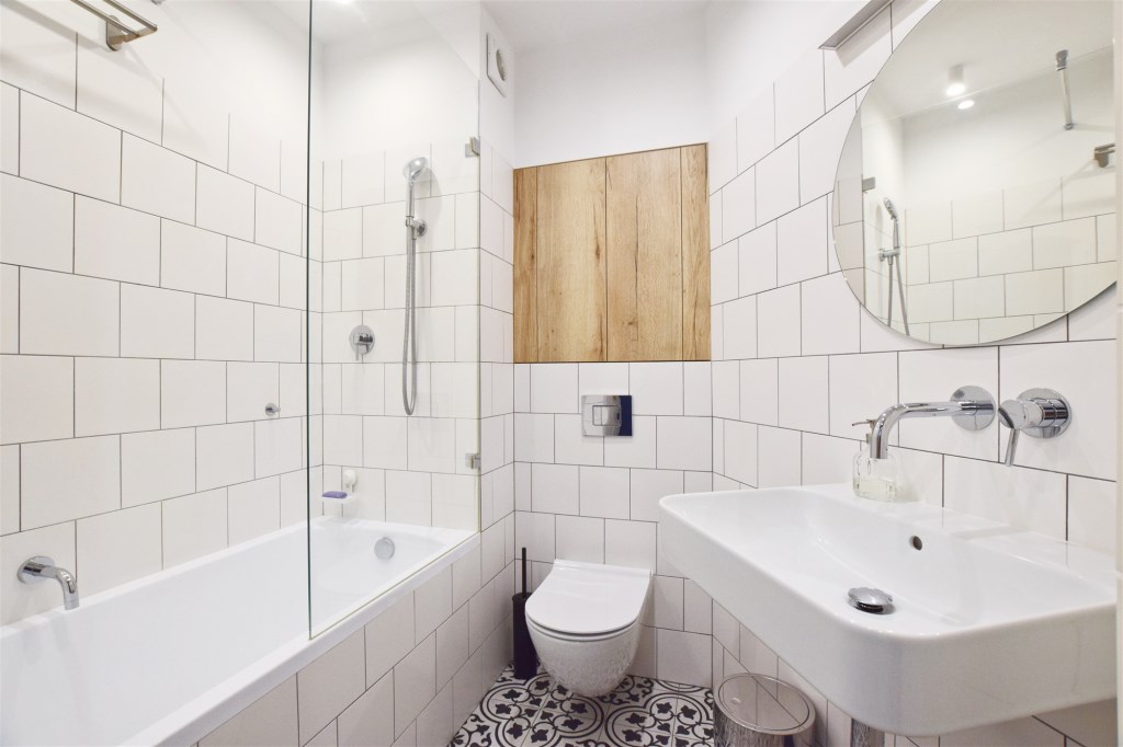 STANDARD:Ściany - gładź gipsowa, tapeta oraz lamele w przedpokoju, w łazience kafelki.