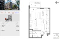 Mieszkanie składa się z pokoju dziennego z aneksem kuchennym i wyjściem na balkon, sypialni, łazienki z WC i przedpokoju.