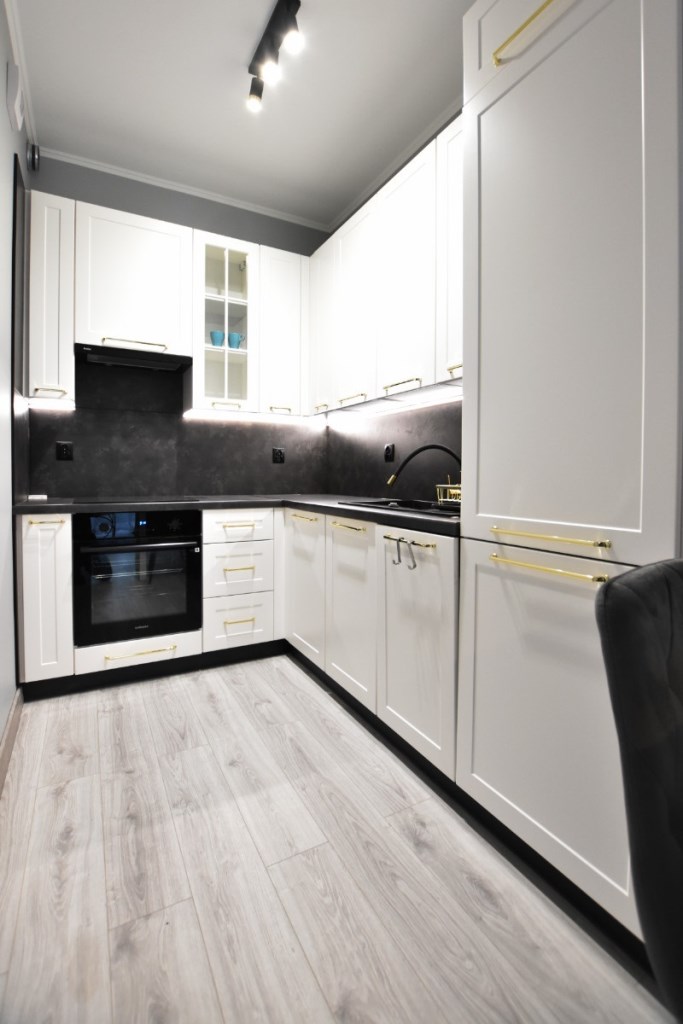 W cenie pozostaje: zabudowa kuchenna ze sprzętem AGD , armatura łazienkowa, szafy.