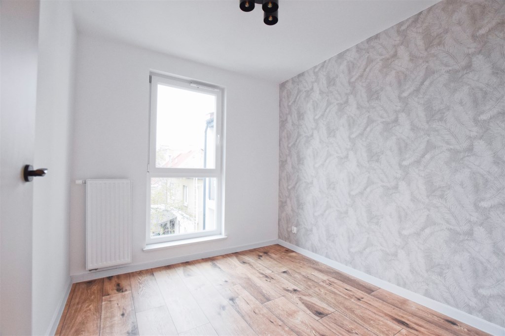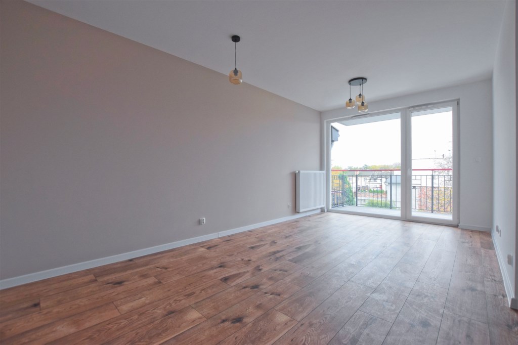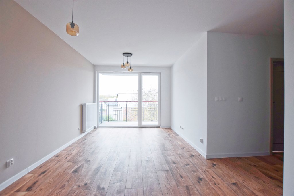 Atrakcyjne wykończone mieszkanie, składające się z salonu z aneksem kuchennym oraz wyjściem na balon, 2 sypialni, łazienki, wc oraz przedpokoju w nowym bloku (2024 r.).