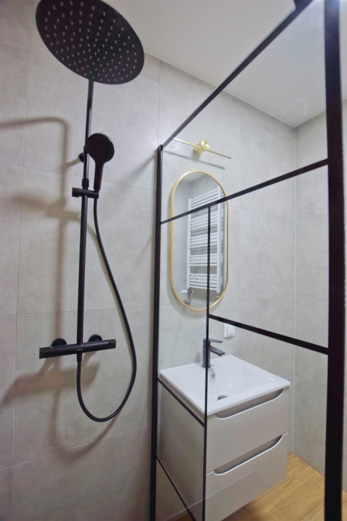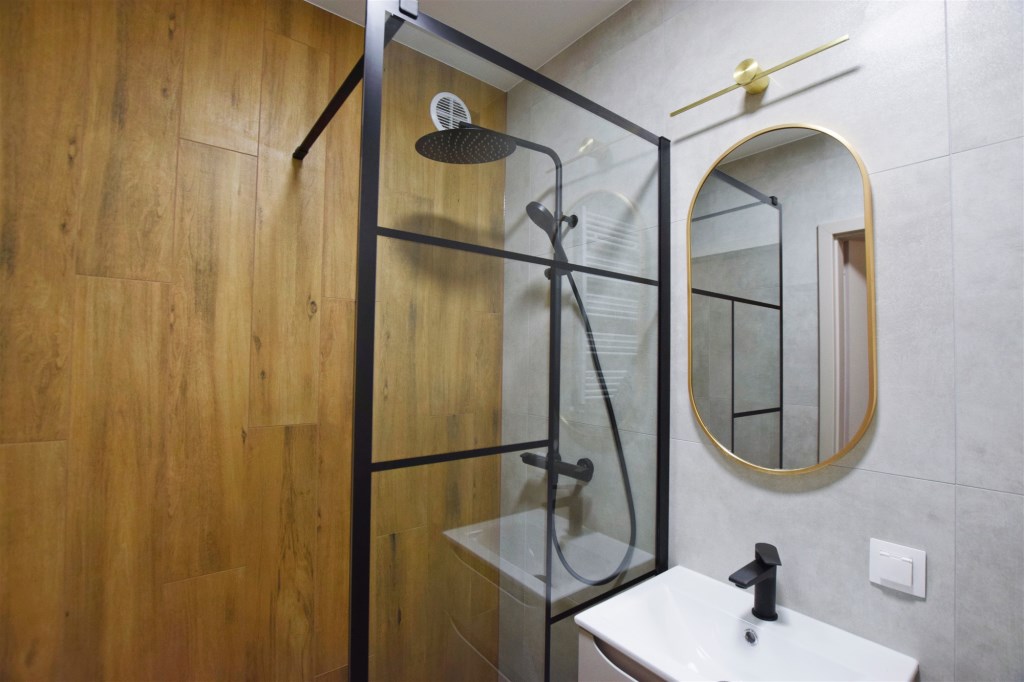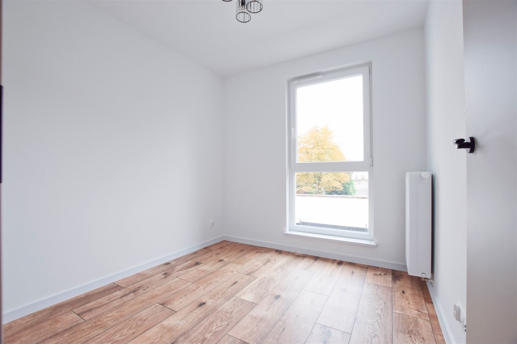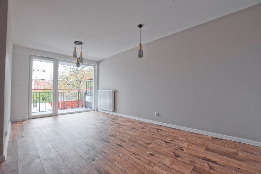 Atrakcyjne wykończone mieszkanie, składające się z salonu z aneksem kuchennym oraz wyjściem na balon, 2 sypialni, łazienki, wc oraz przedpokoju w nowym bloku (2024 r.).