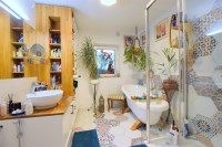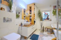 Wnętrze zachwyca unikalnym wystrojem i starannie dobranymi elementami dekoracyjnymi, tworząc ciepłą, inspirującą przestrzeń do życia.