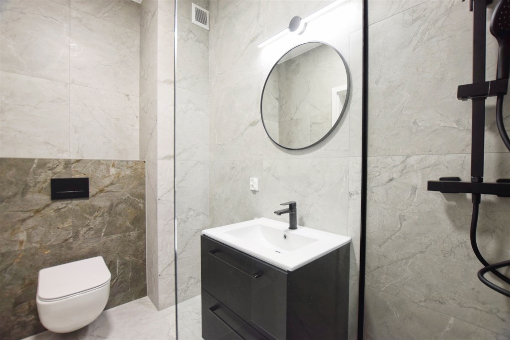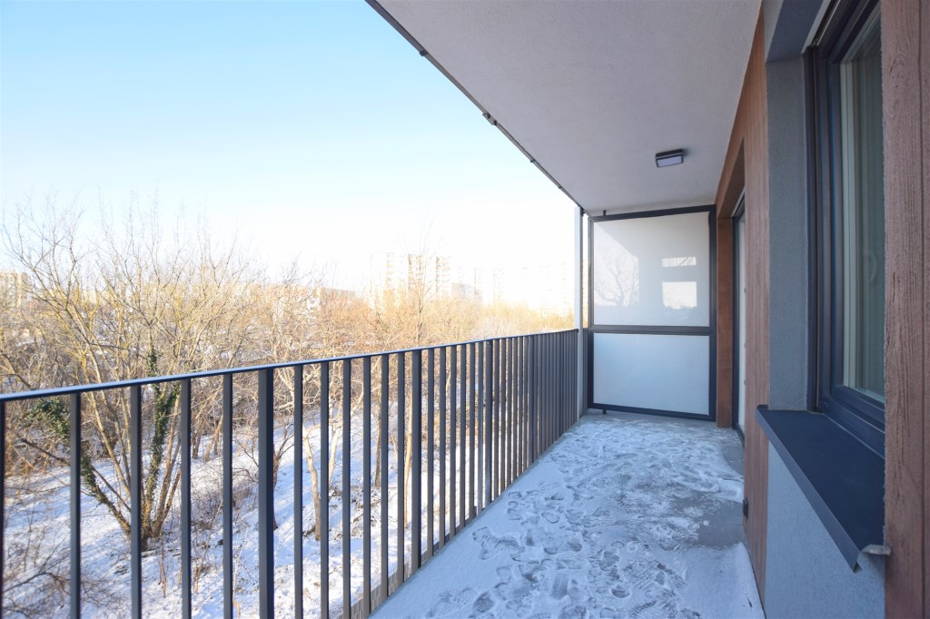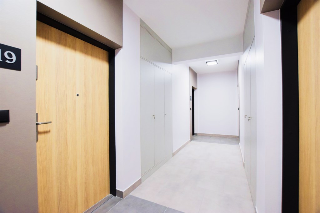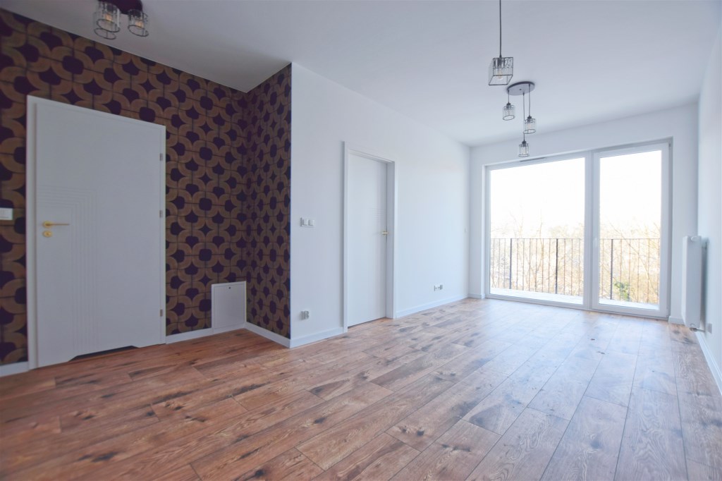 Atrakcyjne wykończone mieszkanie, składające się z salonu z aneksem kuchennym oraz wyjściem na balon o pow. 8,77m2, sypialni, łazienki oraz przedpokoju w dwupiętrowym bloku z 2023 r. z windą.