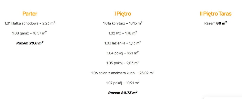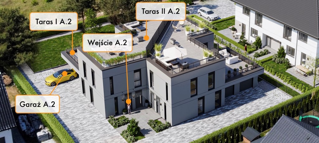 Na powierzchni 83m2 zaprojektowano salon z aneksem kuchennym, trzy sypialnie, łazienkę, wc oraz korytarz z klatką schodową. Ponadto do lokalu przynależny garaż jednostanowiskowy o powierzchni 19m2 oraz niewielki ogródek obok budynku do własnej aranżacji.