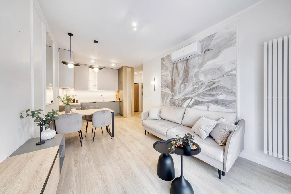 estetyczna, spójna aranżacja wnętrz w jasnej, ponadczasowej kolorystyce,