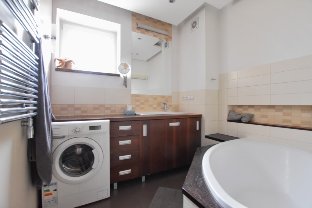 W cenie pozostaje: w pełni wyposażona zabudowa kuchenna ze sprzętem AGD, kompletna łazienka, pojemne szafy w zabudowie oraz wybrane umeblowanie – mieszkanie gotowe do wprowadzenia bez dodatkowych nakładów finansowych.