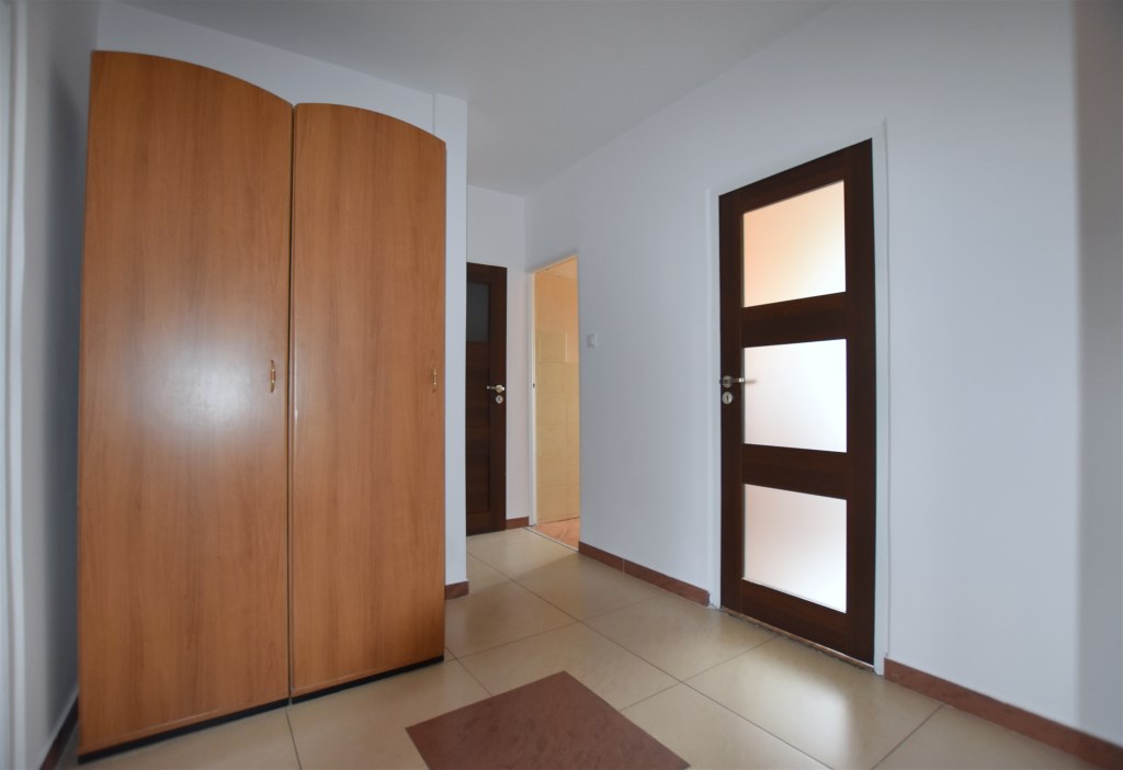 Lokal składa się z trzech nieprzejściowych pokoi, osobnej kuchni, łazienki oraz przedpokoju. Z dużego pokoju wyjście na balkon typu loggia (z widokiem na osiedle, nie na sąsiednie bloki).