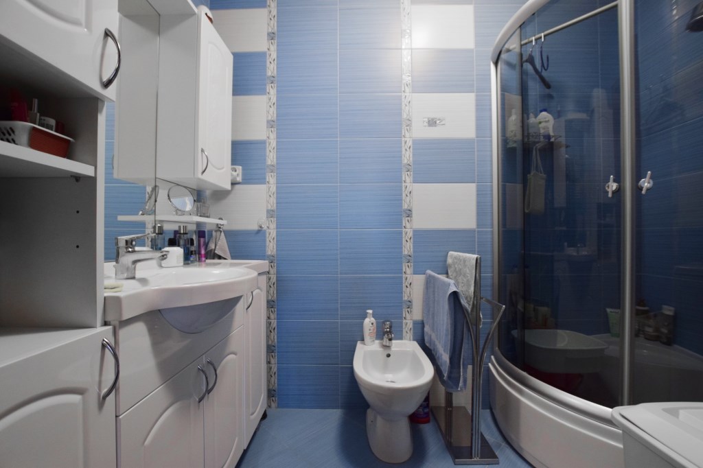 Ściany – płytki w łazience, wc i w pasie roboczym w kuchni, w pokojach gładzie i tapety;