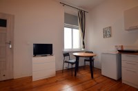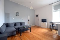Mieszkanie w pełni umeblowane: narożnik z funkcją spania i pojemnikiem na pościel, szafa, komoda, meble kuchenne, kuchenka indukcyjna, lodówka, pralka, stół krzesła. W szafkach kuchennych tzw. "wyposażenie drobne": talerze, szklanki, sztućce, garnki. Jest też składana szuszarka do prania, deska do prasowania, żelazko, odkurzacz - wszystko co potrzebne w domu. Wystarczy wnieść swoje rzeczy i mieszkać :)