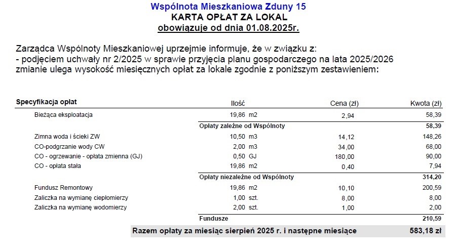 Wysokość czynszu: 580zł/os. (z ogrzewaniem, wodą, śmieciami...itp)