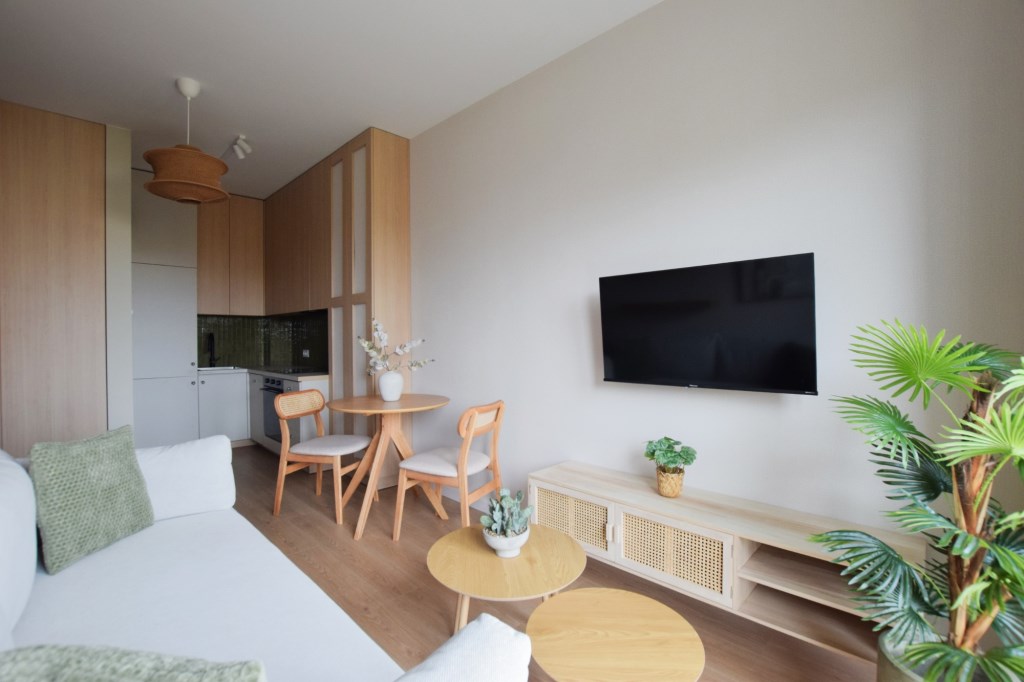 W cenie pozostaje: zabudowa kuchenna z pełnym sprzętem AGD, komplet wypoczynkowy, szafa wnękowa, łóżko sypialniane, pełne wyposażenie łazienki + pralka.