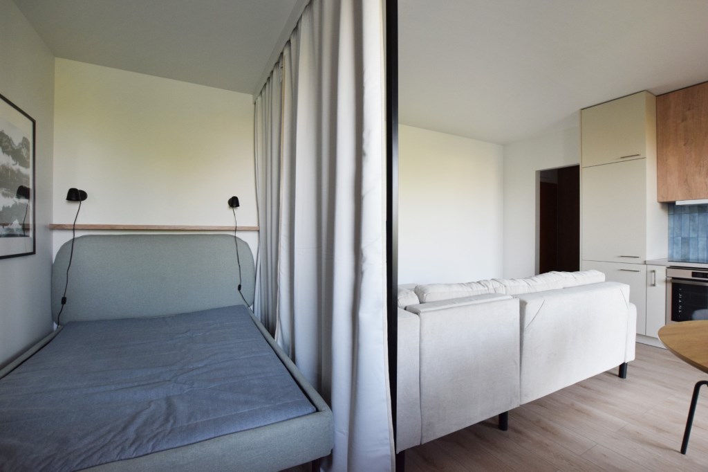 Do wynajęcia gustownie zaprojektowane, wykończone i w pełni wyposażone mieszkanie - gotowe do wejścia bez żadnych nakładów finansowych. W lokalu wydzielono optycznie część dzienną z aneksem kuchennym oraz wnękę sypialnianą z dodatkowym miejscem do pracy. Idealna oferta dla osób, które chcą mieszkać w komfortowych warunkach w pobliżu ścisłego centrum miasta. Dodatkowym atutem jest duży balkon z widokiem na panoramę Bydgoszczy oraz miejsce postojowe w hali garażowej (dodatkowo płatne 200 zł/mc).