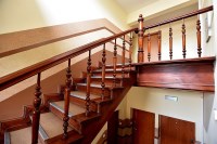 Trzypiętrowa, odrestaurowana kamienica z zadbaną klatką schodową.