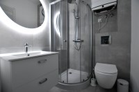 STANDARD:Mieszkanie składa się z pokoju dziennego z aneksem kuchennym, osobnej sypialni oraz łazienki z wc. W aneksie kuchennym sprzęty w zabudowie: lodówka z zamrażalnikiem, pralka, płyta elektryczna, piekarnik, okap. W pokoju NIE rozkładana kanapa, telewizor. W sypialni łóżko, stolik nocny i dwie komody. W korytarzu pojemna szafa.