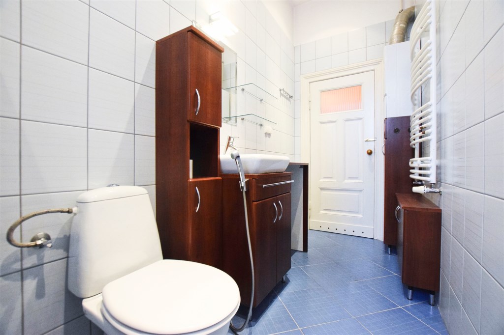 Lokal składa się z 4 pokoi, kuchni, łazienki z prysznicem, przedpokoju oraz spiżarni.