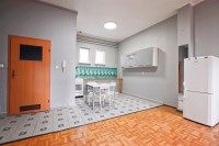 Podłogi – wykładzina PCV, wykładzina, kafle;