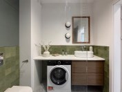 W cenie pozostaje: zabudowa kuchenna z pełnym AGD (lodówka, zmywarka, piekarnik, płyta indukcyjna, okap), ponadto sofa, stół z krzesłami, szafka RTV; pojemna szafa dwudrzwiowa w przedpokoju; łazienka z prysznicem oraz pralką; meble w sypialni.